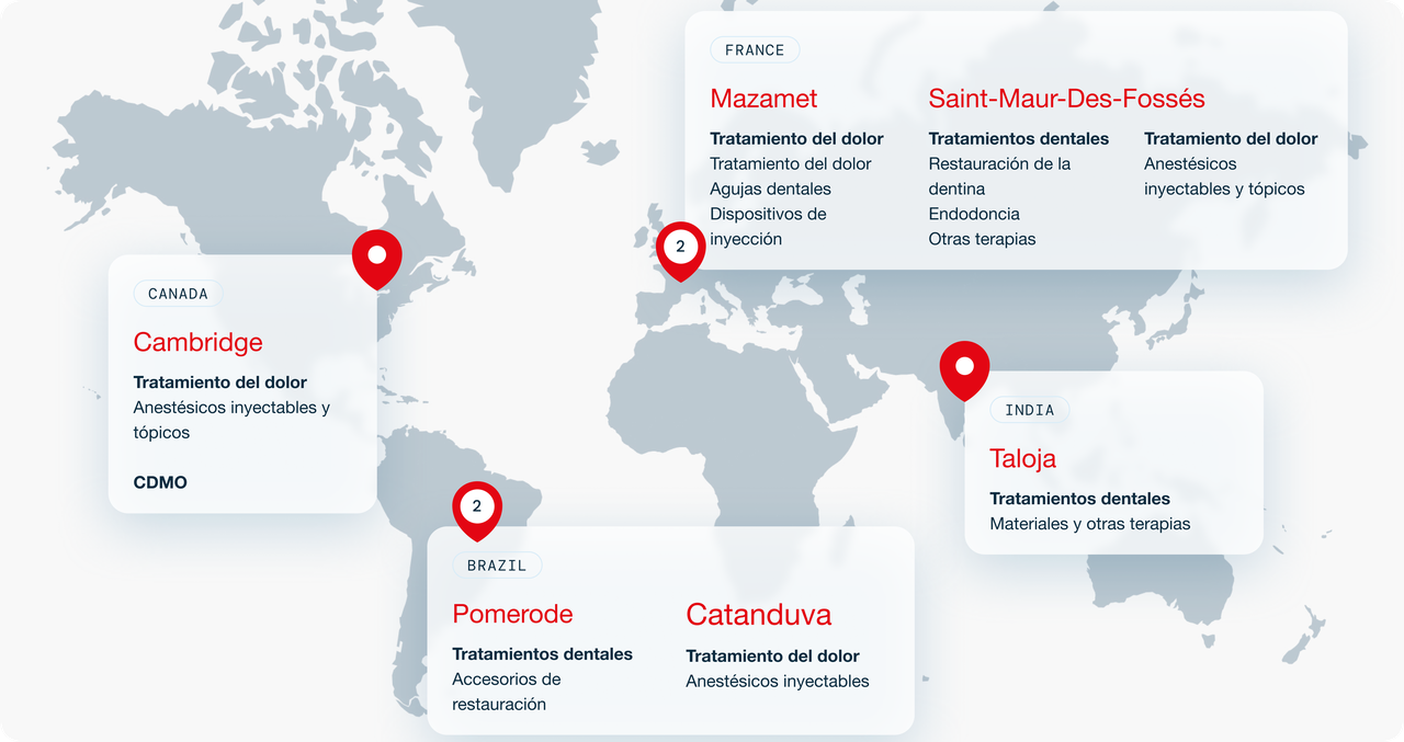 Imaginamos un futuro en el que podamos salvar cada diente y en el que todos los tratamientos dentales sean indoloros. Con nuestra creciente gama de productos dentales terapéuticos y para el tratamiento del dolor de primera clase, ayudamos a los dentistas a hacer realidad esa visión. Si desea más información sobre nuestros productos, consulte nuestros sitios web locales.