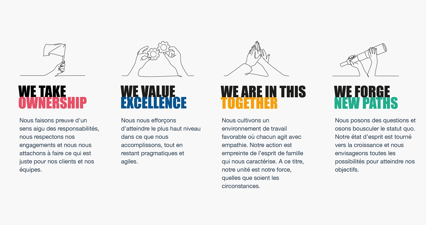 Nous nous efforçons de créer un impact positif dans chacun de nos domaines d’activité, en poursuivant notre croissance tout en maintenant des pratiques durables, responsables et éthiques.