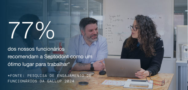 A Septodont oferece a cada funcionário um plano de carreira rico, significativo e gratificante, adaptado aos seus pontos fortes e ambições pessoais. Esforçamo-nos para atrair, recrutar, desenvolver e reter os melhores talentos do mundo.